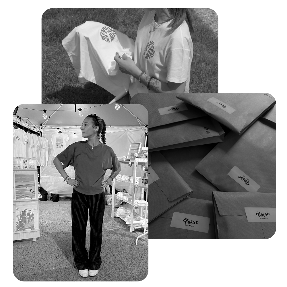 Je m’appelle Éloïse, créatrice passionnée et fondatrice d’Éloïse Création. Je dessine, conçois et imprime moi-même des vêtements et accessoires inspirés de l’océan, de l’été et des bons moments.