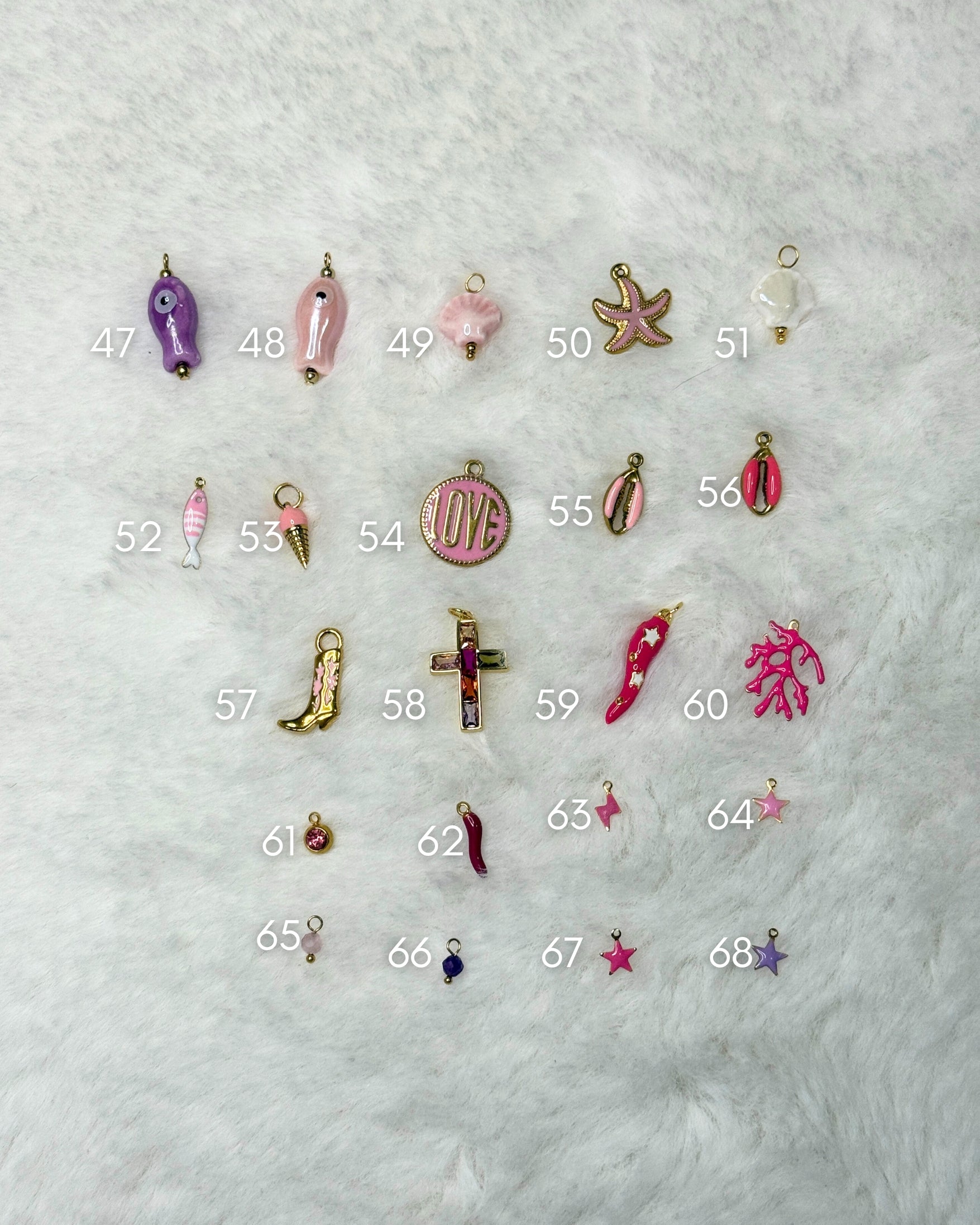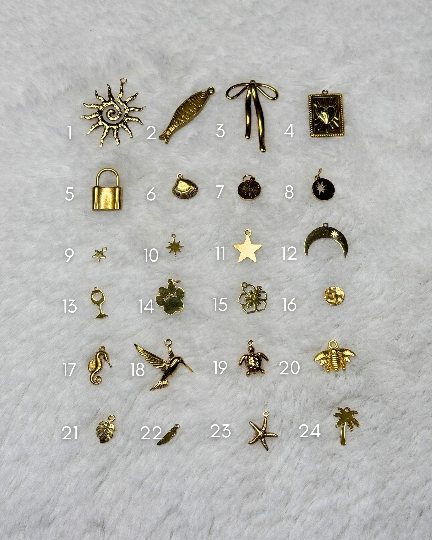Repérez le numéro de la breloque souhaitée, puis ajoutez-la au panier avec votre chaîne pour créer un bijou unique.